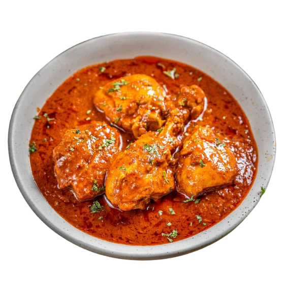 Our Chicken Vindaloo is cooked with vinegar, garlic, chilies, and aromatic spices.